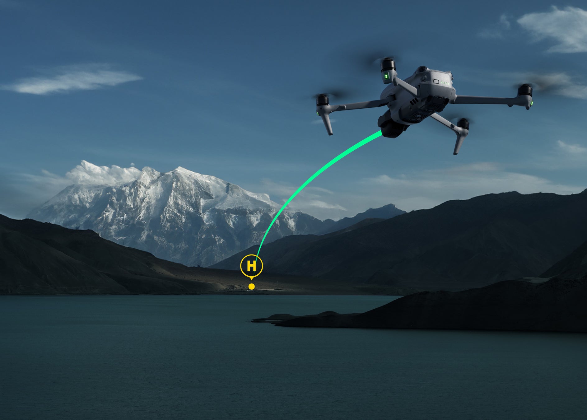 リアルタイムビジョンポジショニングと地図構築技術を搭載し、衛星信号のない場所から離陸した場合でも、安全に帰還することができます。低照度条件でも前面のLiDARによって周辺の形状を把握して障害物を検知し、上方に回避できるため、夜間でも安全に帰還することができます。
