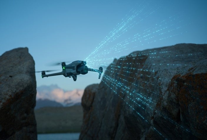 DJIドローン初となる前向きLiDARを搭載し、下向き赤外線飛行時間(ToF)センサーと6個のビジョンセンサー(前面、背面、下部に各2個)により、飛行中や帰還中に建物などの障害物を自動で識別して回避できます。夜間撮影時でも安全に撮影することができます。